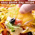 This creamy and delicious taco dip is one of my favorites because it’s easy to make and packs so much flavor and mouthwatering goodness in each and every bite. You won’t be able to stop at just a few dips with this one–and you’ll be getting requests again and again to make this!